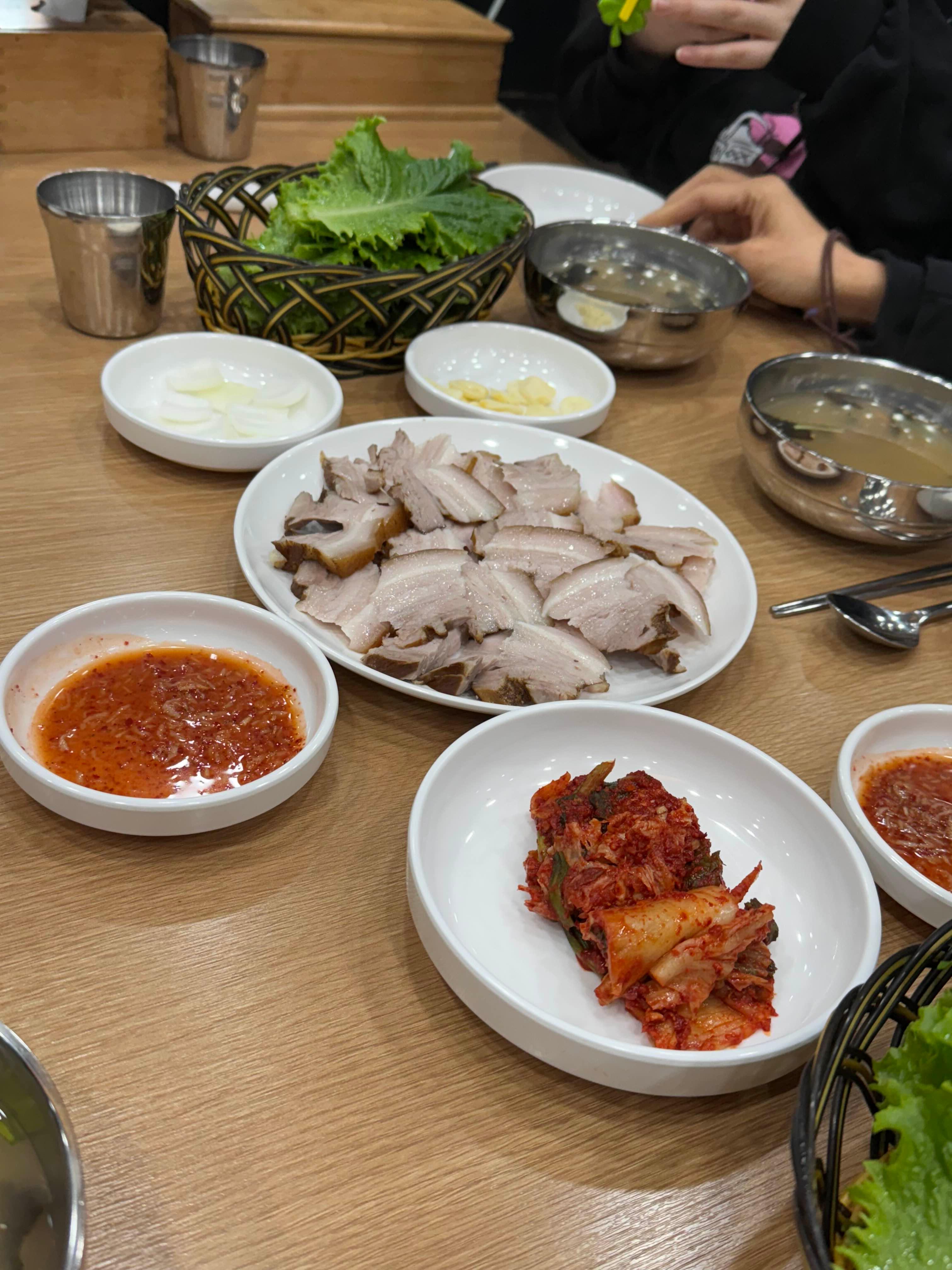 수육, 두부 두루치기, 칼국수를 함께 주문해서 배부르게 잘 먹었고, 특히 두루치기 국물에 칼국수 사리를 넣어 비벼 먹는 조합은 꼭 추천드리고 싶어요.